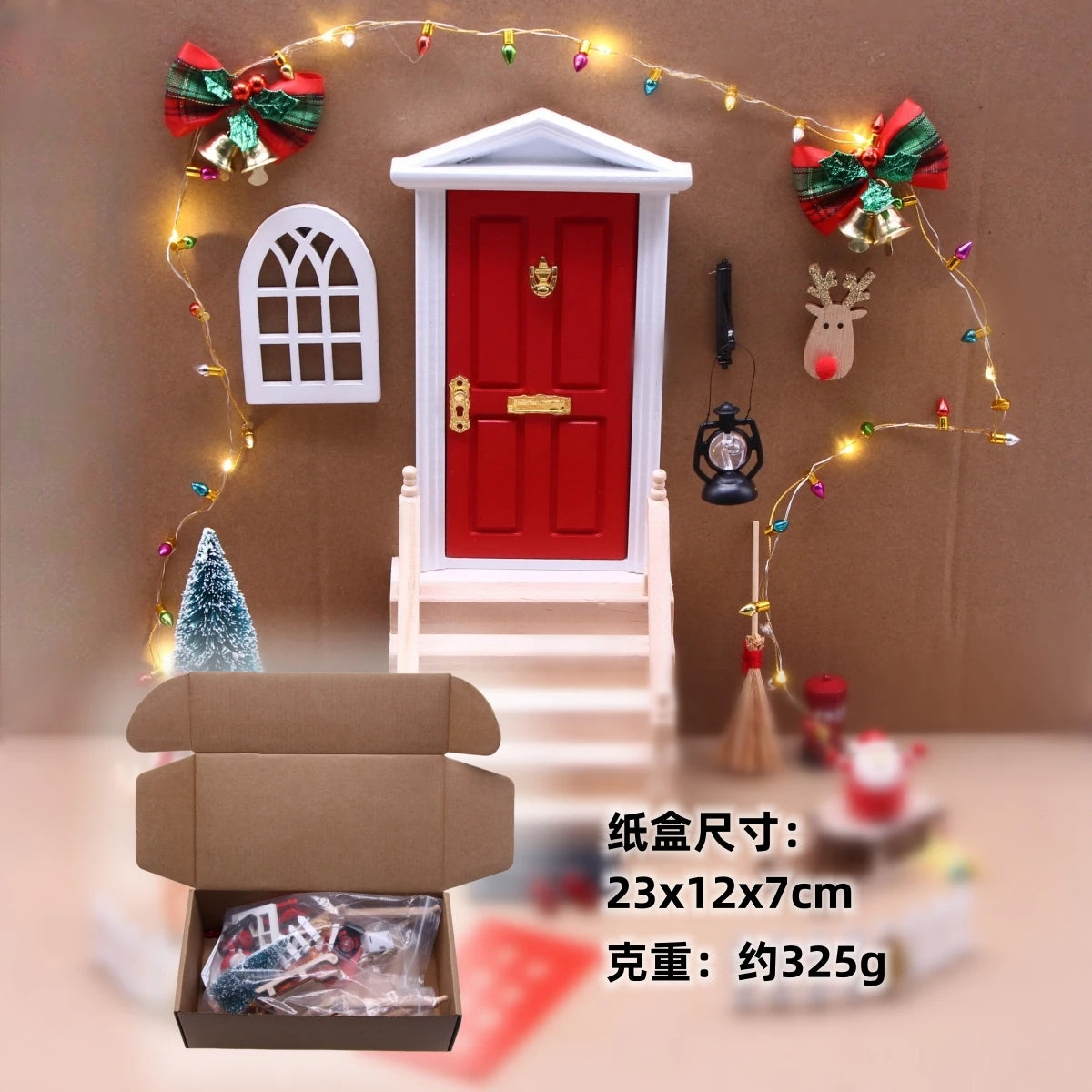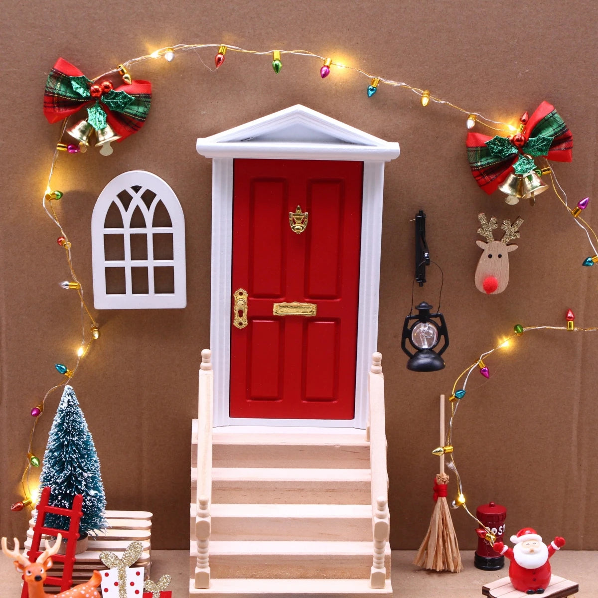 Mit diesem Wichtelhaus-Set- zieht sofort Weihnachtszauber bei dir ein. Enthalten sind eine rote Holztür, Leiter, Schleife, Glocken und eine warmweiße LED-Lichterkette, die deine Szene zum Strahlen bringt. Perfekt, um eine komplette Wichtelwelt aufzubauen und Kindern wie Erwachsenen ein Lächeln ins Gesicht zu zaubern. ✨