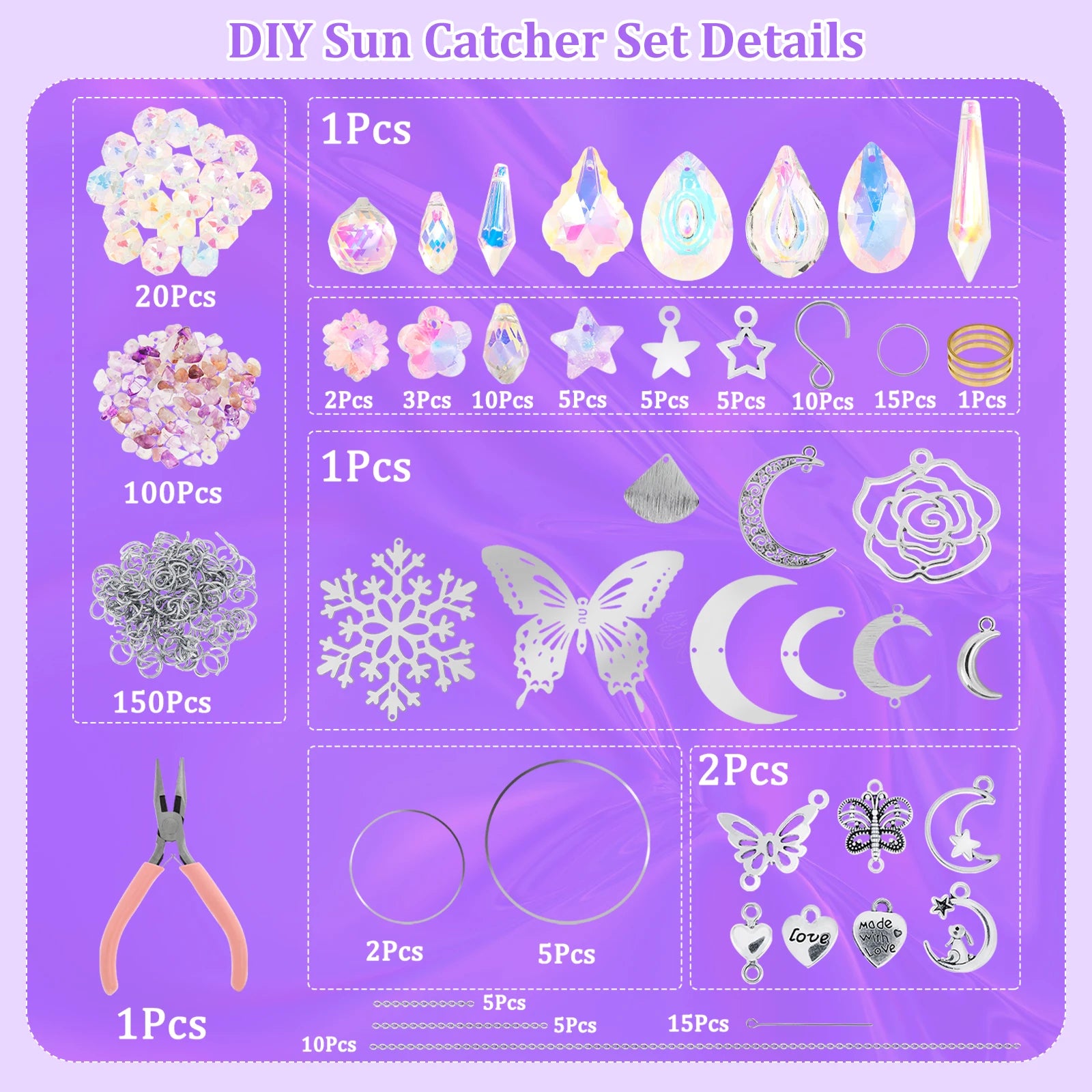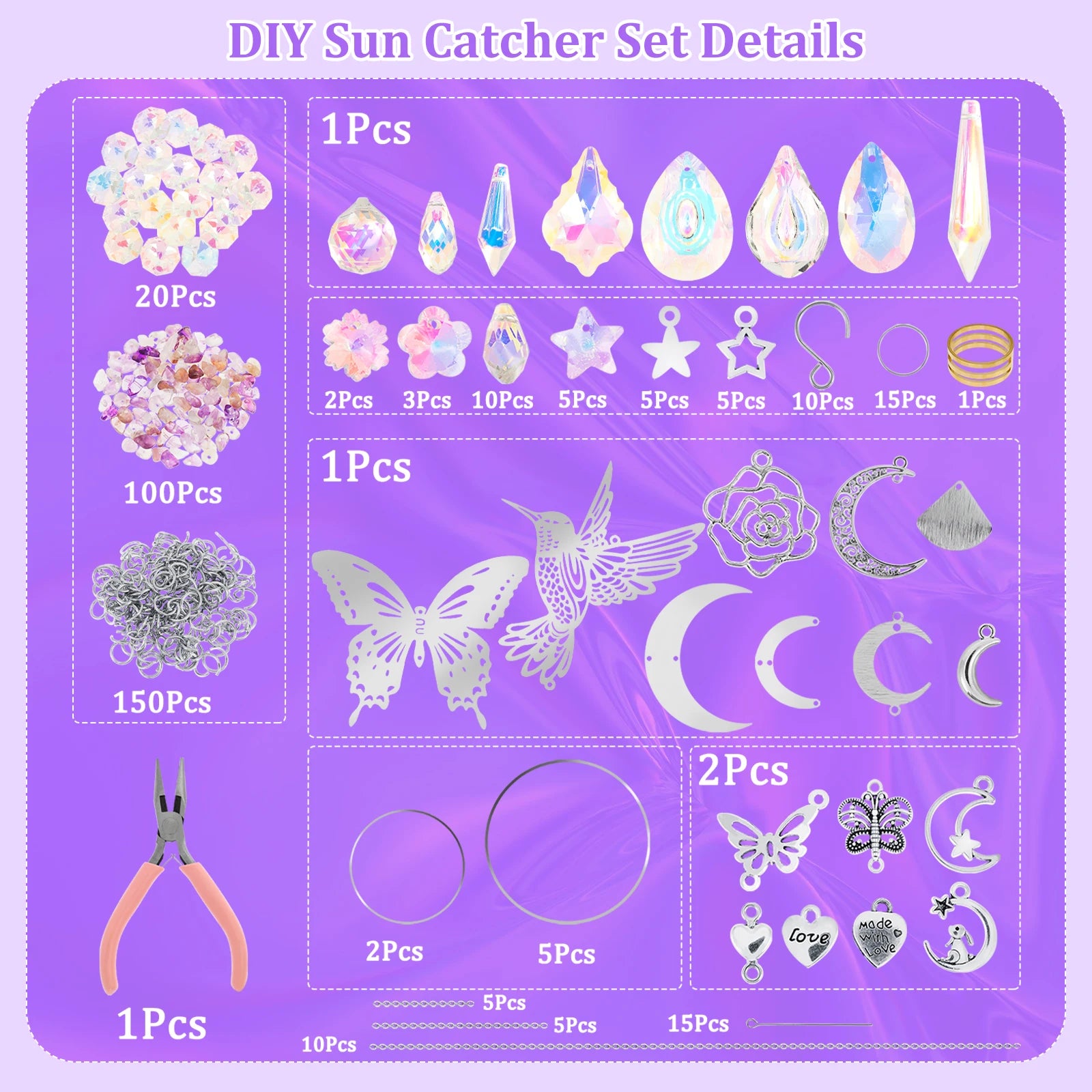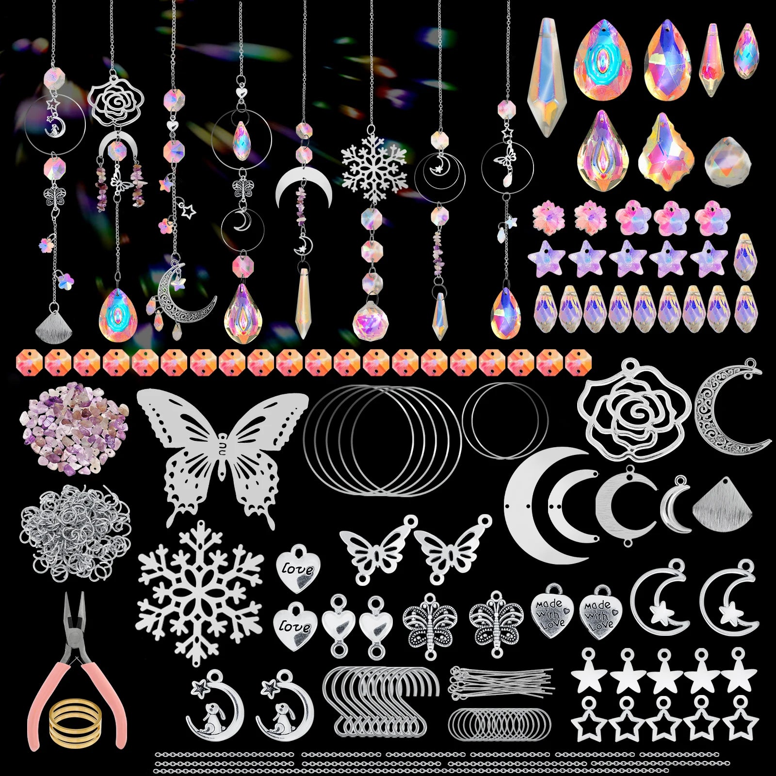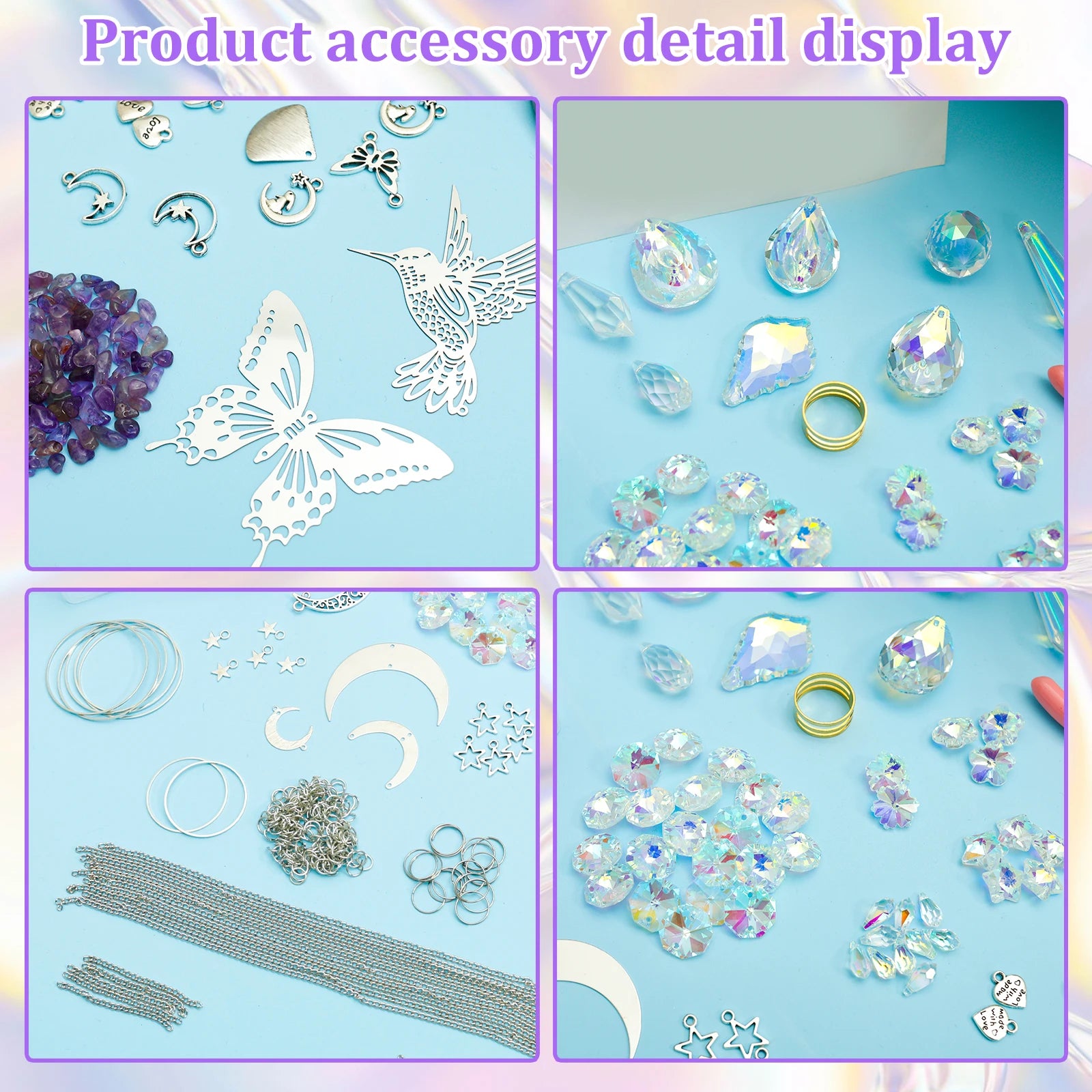 Dieses Sonnenfänger-Komplettset- verwandelt dein Zuhause in ein funkelndes Spiel aus Licht und Farbe. Mit filigranen Metallteilen und klaren Prisma-Elementen erschaffst du einzigartige Deko-Stücke, die das Sonnenlicht in leuchtende Regenbogenreflexe verwandeln – jedes Stück ein Unikat, das positive Energie versprüht.✨