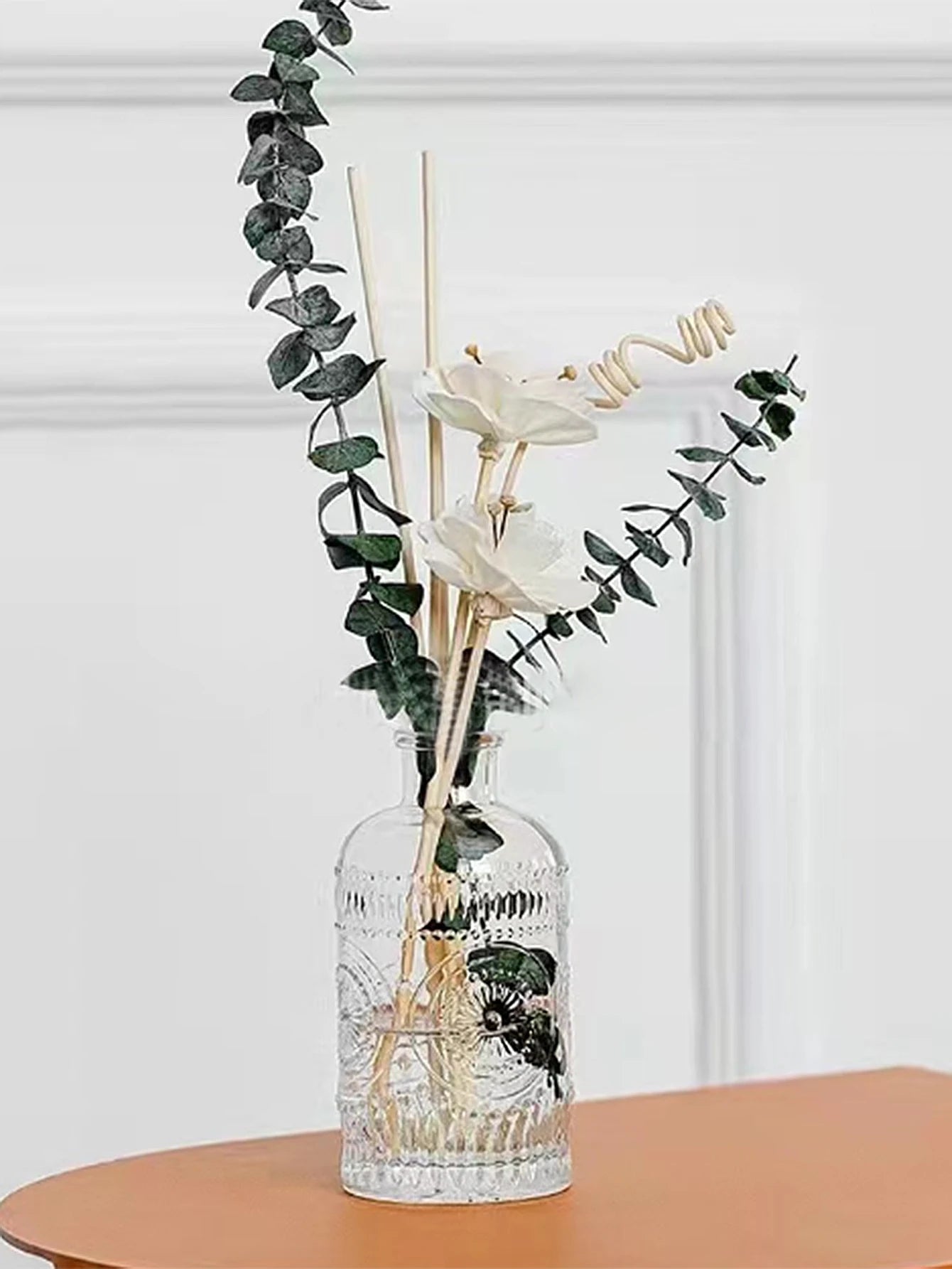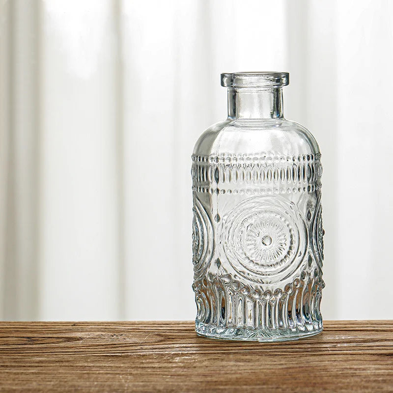 Diese Retro-Vase- aus geprägtem Glas bringt subtile Eleganz und Leichtigkeit in dein Zuhause. Das strukturierte Glas bricht das Licht auf sanfte Weise und verleiht Trockenblumen, Zweigen oder Einzelstielen eine besondere Tiefe. Ideal, um mit wenig Aufwand eine ruhige, stilvolle Atmosphäre zu schaffen. ✨