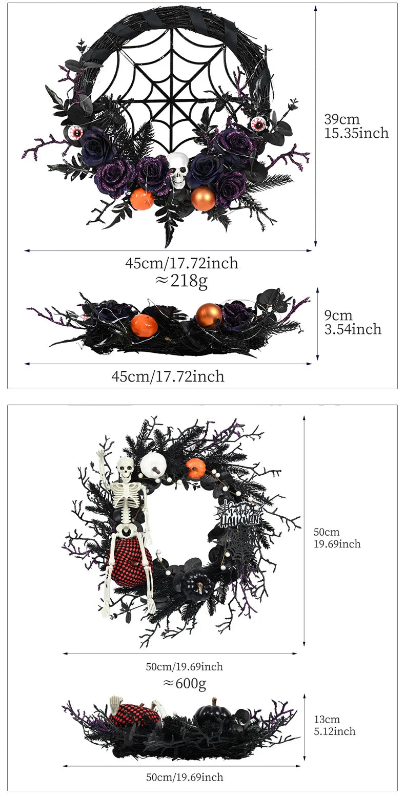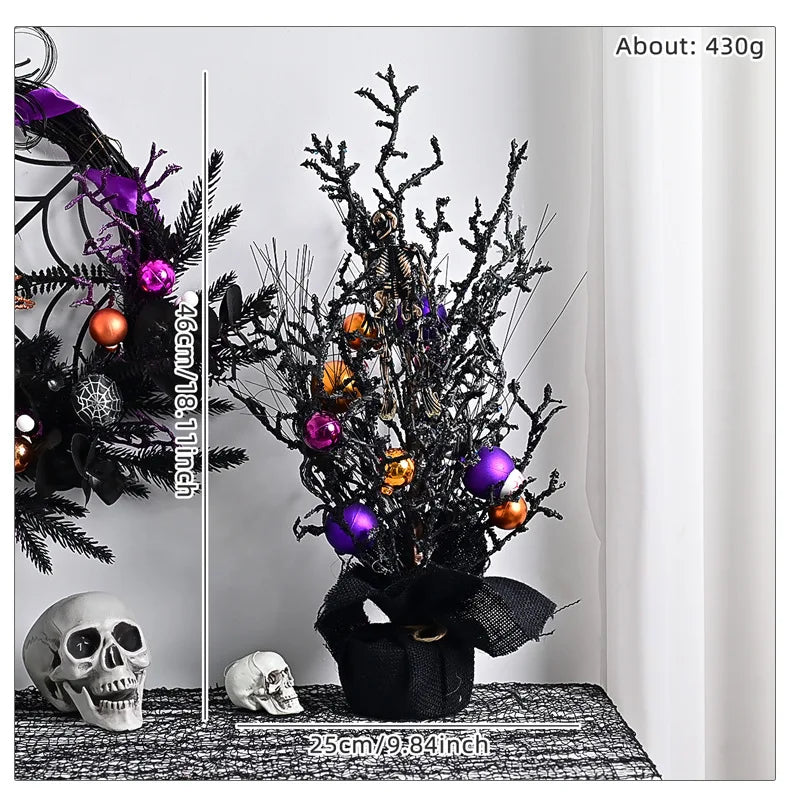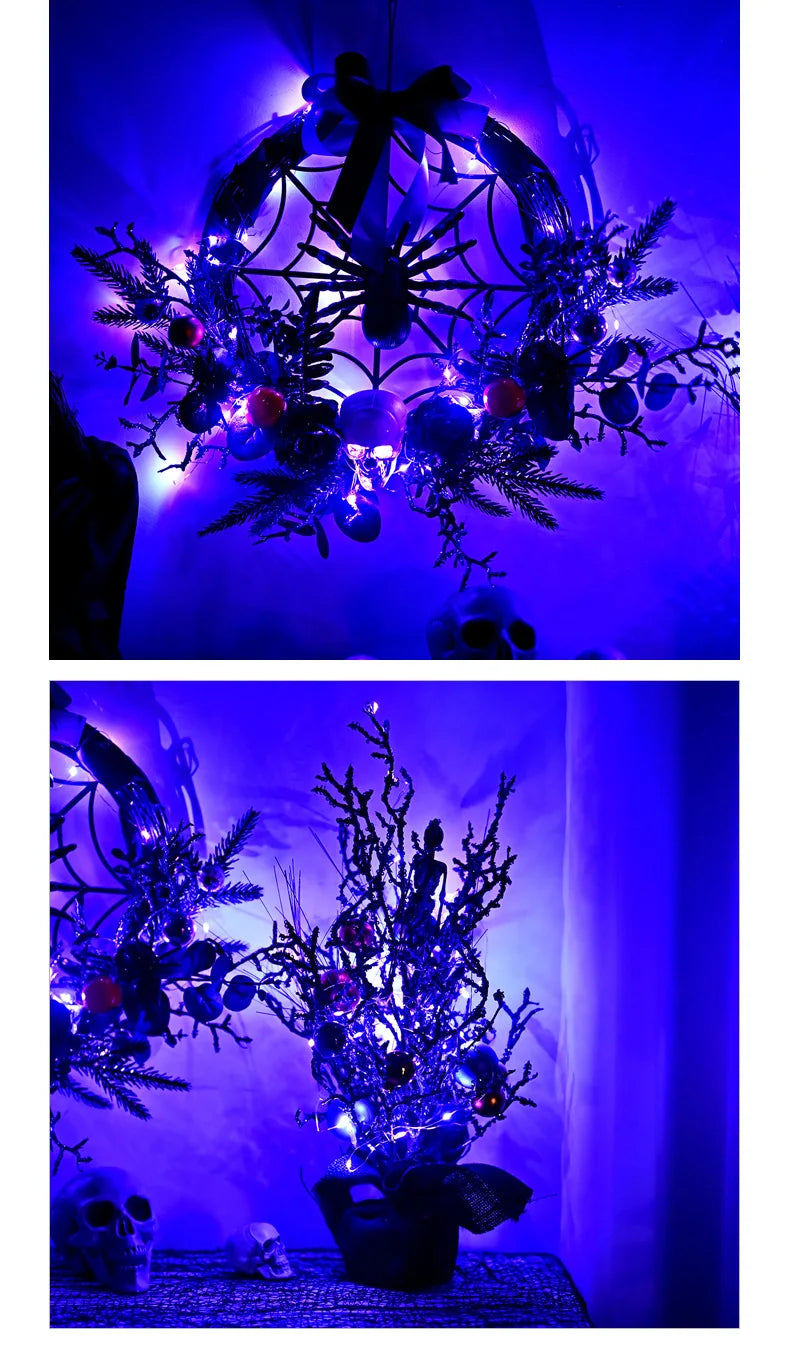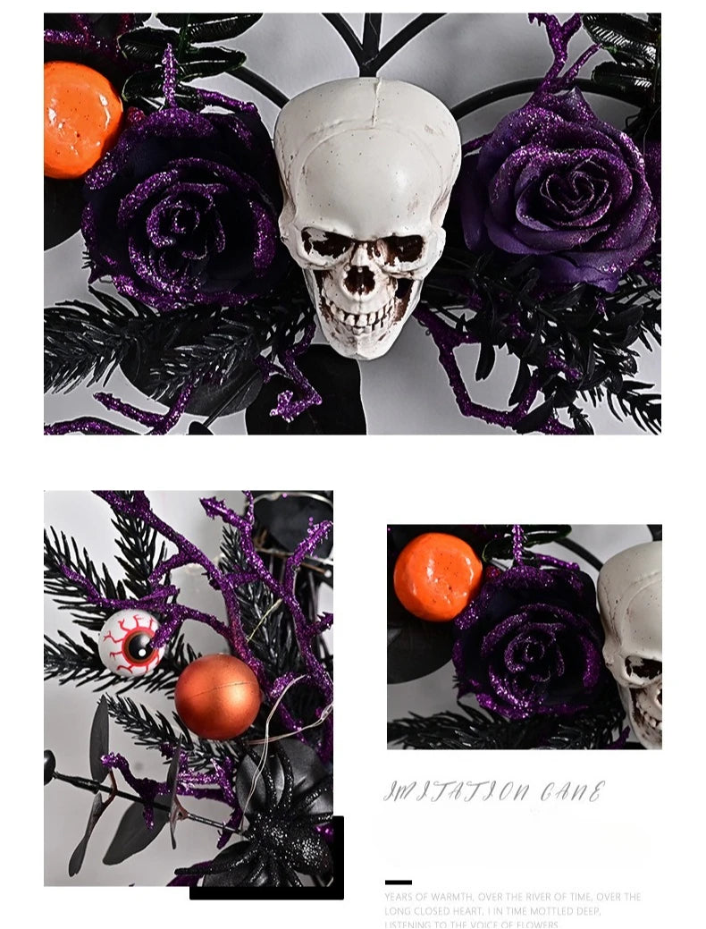 Dieser eindrucksvolle Kranz- mit Schädel-Details und lila Ranken bringt sofort gruselige Stimmung an deine Tür. Die Kombination aus dunklen Farben und markanten Elementen sorgt für ein mystisches Ambiente, das perfekt zu deiner Halloween-Party oder als Deko fürs Zuhause passt. Ob im Eingangsbereich oder im Wohnzimmer – dieser Kranz zieht alle Blicke auf sich. 🎃