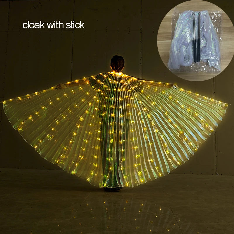 Diese leuchtenden Flügel- bringen Magie auf die Bühne und auf jedes Festival! Mit ihrem schimmernden LED-Glow verwandeln sie deinen Auftritt in ein visuelles Spektakel. Perfekt für Tänzerinnen, Performer oder alle, die nachts einfach glänzen wollen. Leicht, auffällig, hypnotisch – ideal für die große Show. 💃🌙
